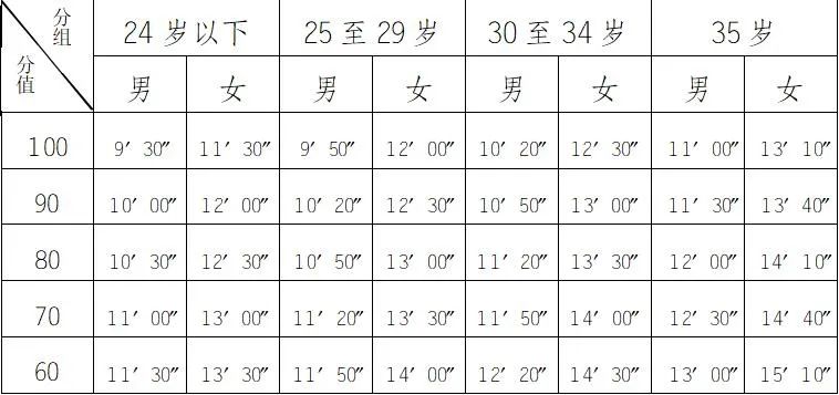 考評(píng)標(biāo)準(zhǔn):2000米跑(≤分秒)