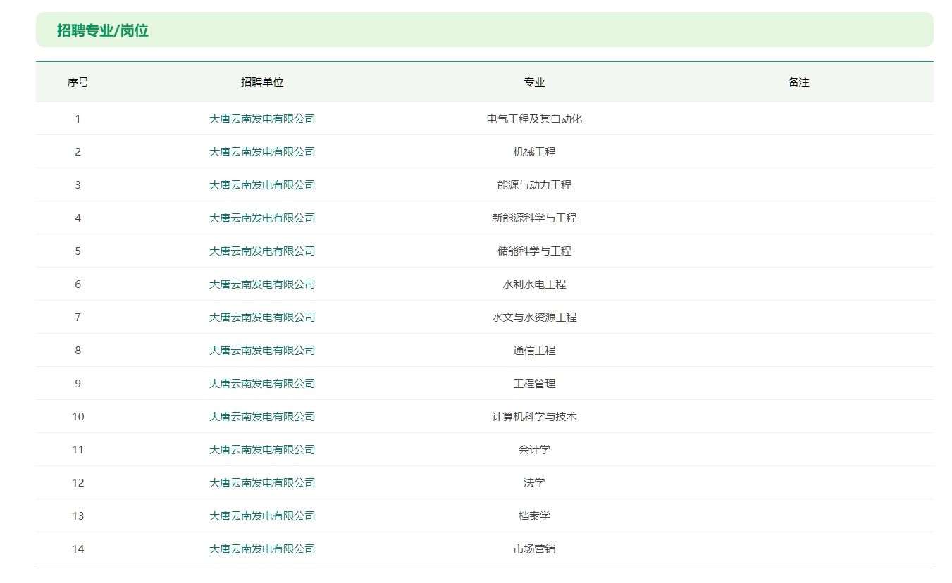 2025年大唐云南發(fā)電有限公司所屬企業(yè)高校畢業(yè)生招聘公告