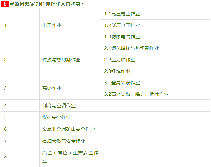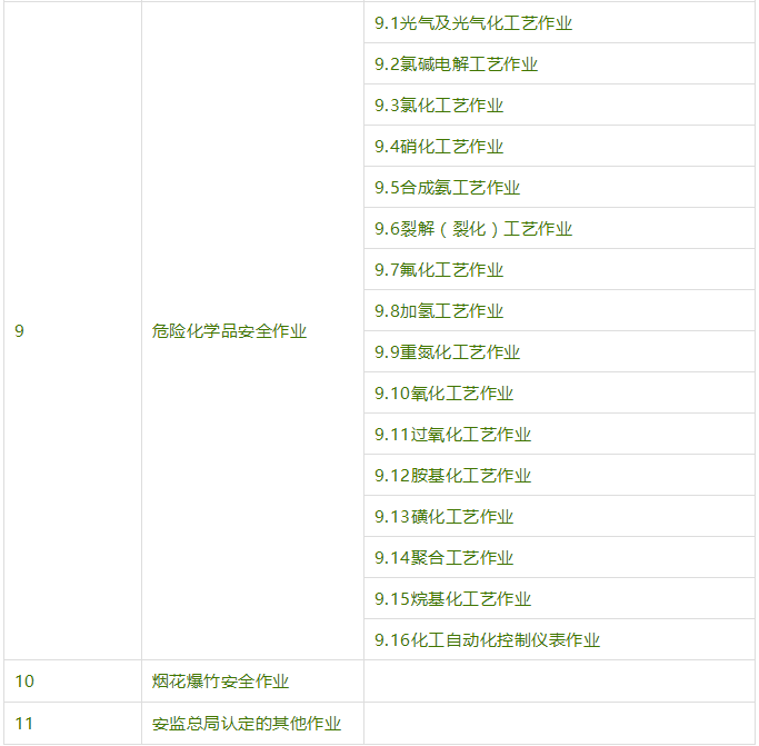 云南省2021年應(yīng)急管理局/特種作業(yè)操作證報考工種