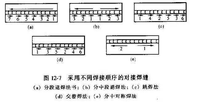 跳焊、分段退焊、分中分段退焊、交替焊和分中對(duì)稱焊