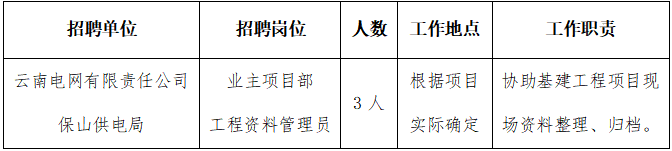 保山供電局項(xiàng)目制用工招聘公告