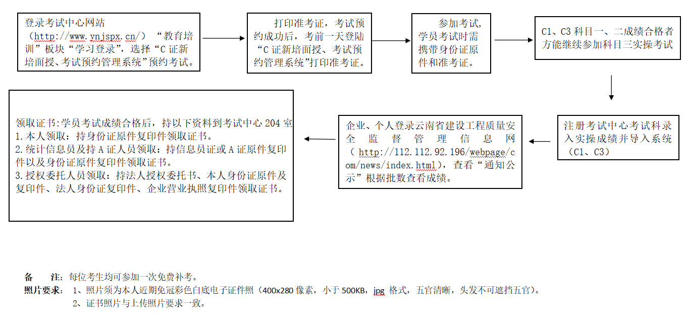 云南省建筑施工企業(yè)專職安全生產(chǎn)管理人員(C證)考試業(yè)務(wù)辦理流程